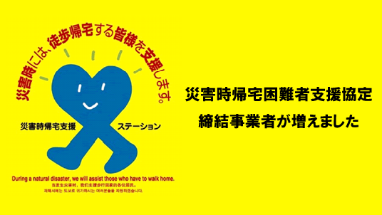 災害時帰宅困難者支援協定 締結事業者が増えました